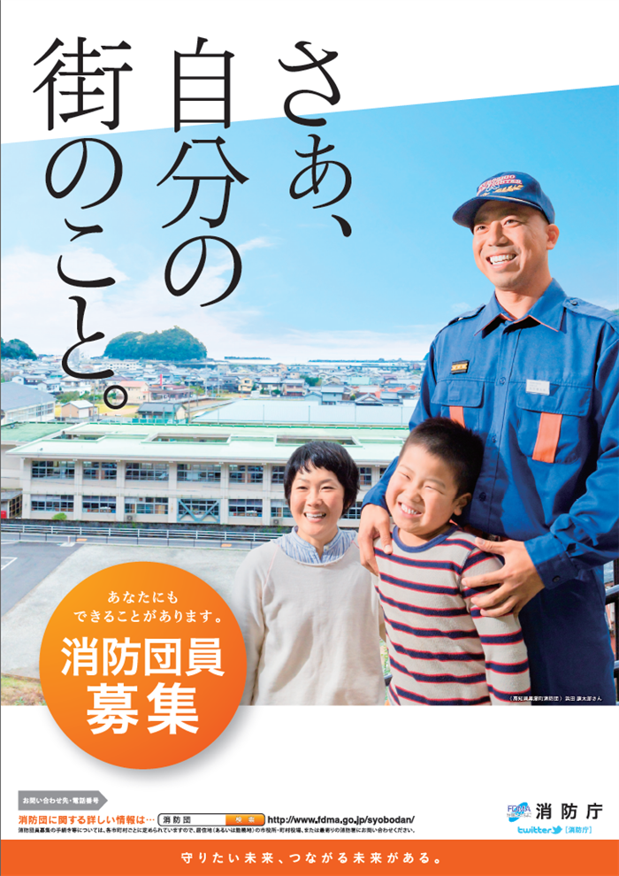 なお、平成27年度の消防庁の消防団入団促進ポスターのモデルに、イケメン班長さんがモデルとして起用されました。