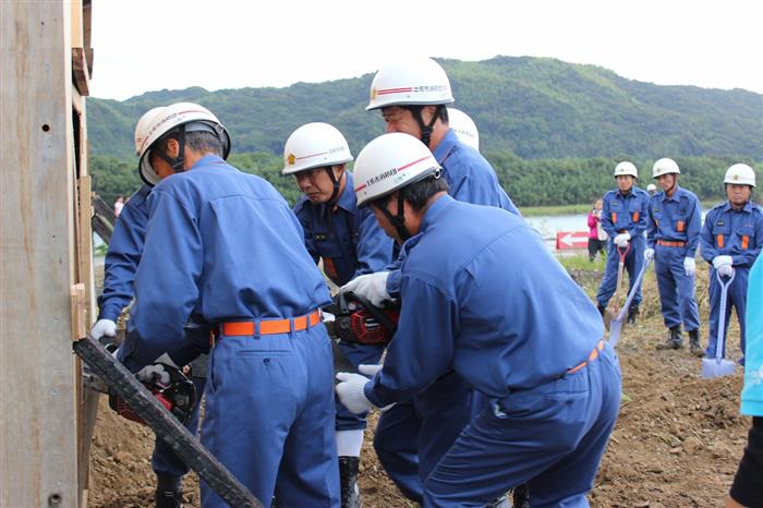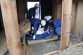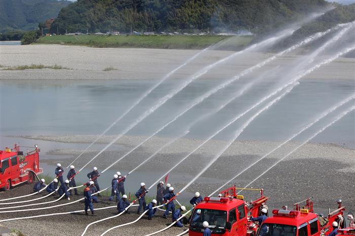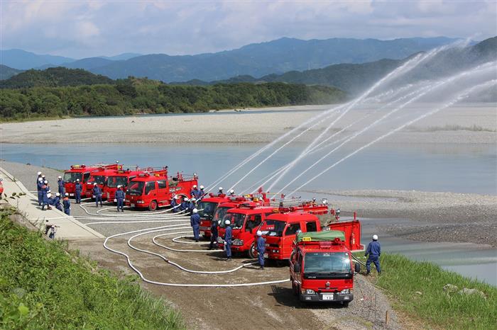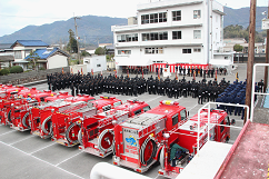 また、土佐市消防団では、分団ごとの各種訓練はもとより、年2回ブロックごとの連携訓練を行い、毎年行われる土佐市総合防災訓練において日頃の訓練の成果を市民に広く披露するとともに、自主防災組織との訓練を重ね顔の見える繋がりを構築し来たるべき災害に備えています。