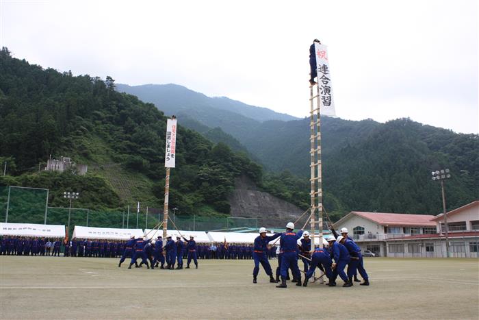 昭和初期に愛媛県から伝わった梯子教練を90年近く伝承し続けており、7月の連合演習、2月の出初式に於いて披露している。