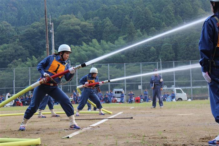 男性消防団員に体力的に敵うわけありませんが、「女性らしく丁寧に、美しく見えるよう挑もう」ということになり、地区予選に出場されました。