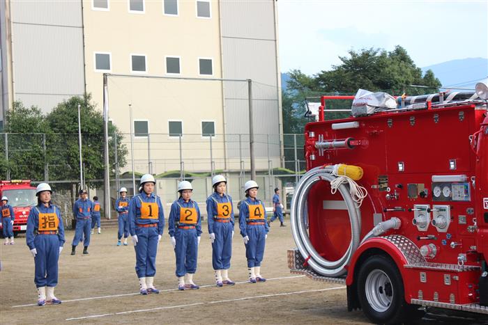 分団に女性消防団員が増えたこともあり、「地区予選のポンプ車操法に、女性消防団員のみのチームで出場してみないか」と、男性消防団員たちの提案により挑戦したそうです。